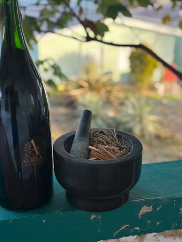 At Aurea we use traditional herbs and spices such as Anamú, Star Anis, Bohuco pega- palo, Albahaca, Cinnamon, Princess Vine, Marabeli, Clove, Agave leaves, and Timacle. We also add and ferment our mix of spiced rum, red wine, and honey. It is not uncommon to add fruits such as guava, or even molasses as well.